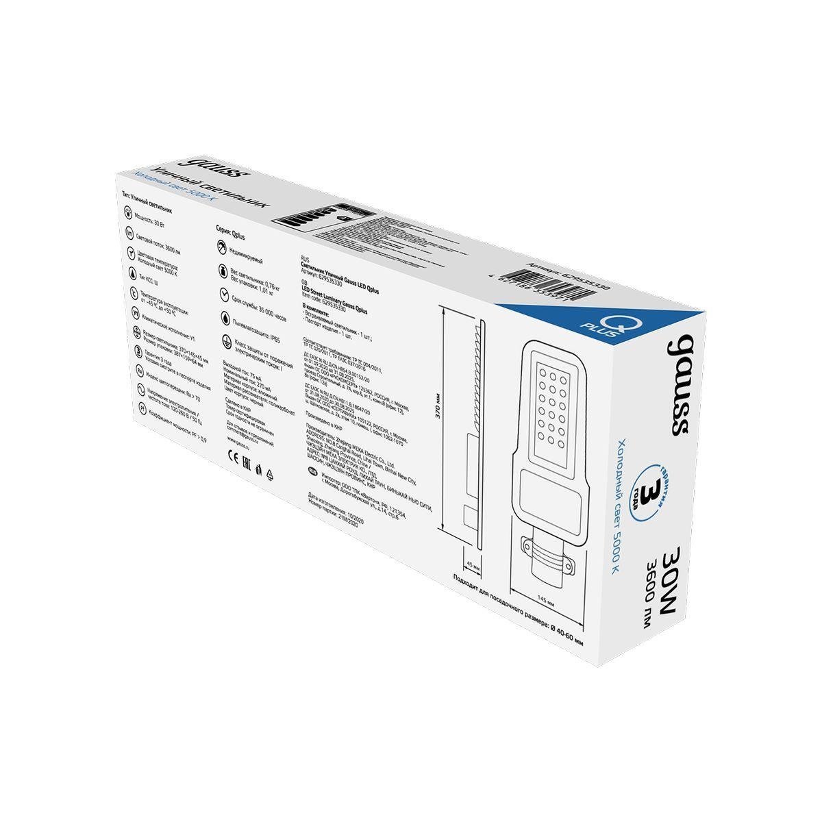 Уличный светодиодный консольный светильник Gauss Qplus 629535330